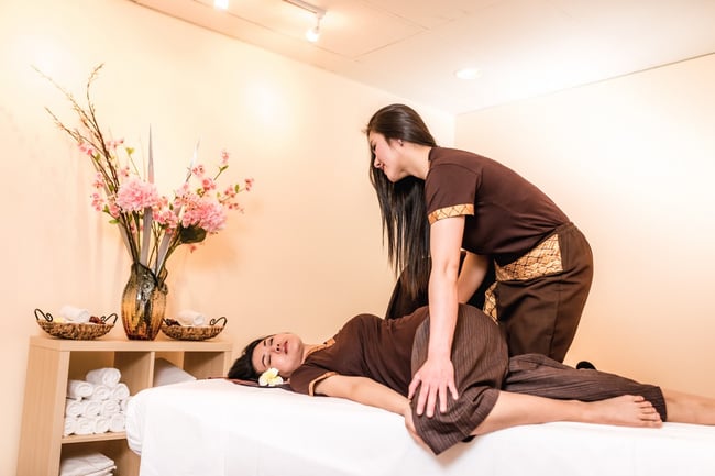 Ved thaimassage bruger behandleren hænder, arme, albuer, fødder, knæ og ben til at bevæge dig ind i en række yoga-lignende strækninger mens behandleren også presser på dine muskler og anvender punkttryk.